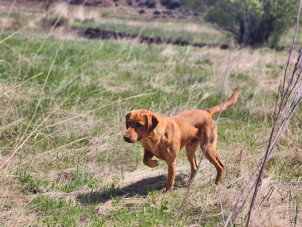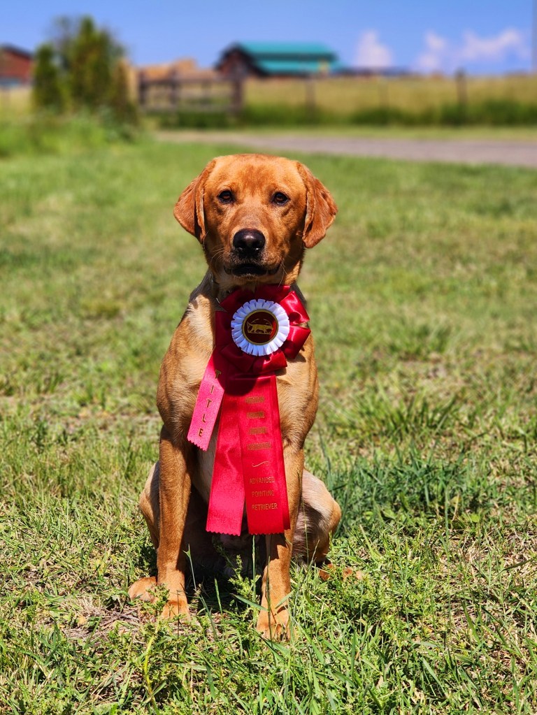 Tigger is a 60lb dark yellow/red Labrador produced by us here at Colockum Gun Dogs in March 2021. Coming from a pedigree full of QAA, 4xGMPR, MH’s, FC’s, this guy can do it all. His first season in training he achieved his Started Hunting Retriever and his Certified Pointing Retriever titles. He is sired by FC Tiger Mtn’s Bettin’ on Black ( 2019 NRC Finalist) “Gamble” and his Dam is our very own MPR SHR All In On Red JH “Rou”. This guy has the most stylish point, and has the most beautiful and loving temperament to match. In 2023 so far he’s achieved 1 “seasoned” pass, along with his Advanced Pointing Retriever title. We’ll continue pursuing his Master Pointing Retriever & Seasoned titles! Colockum Gun Dogs manages the breeding of Tigger.